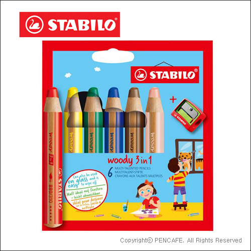 Stabilo woody 3 in 1 Color Pencil 6 Color + Woody's Shafner